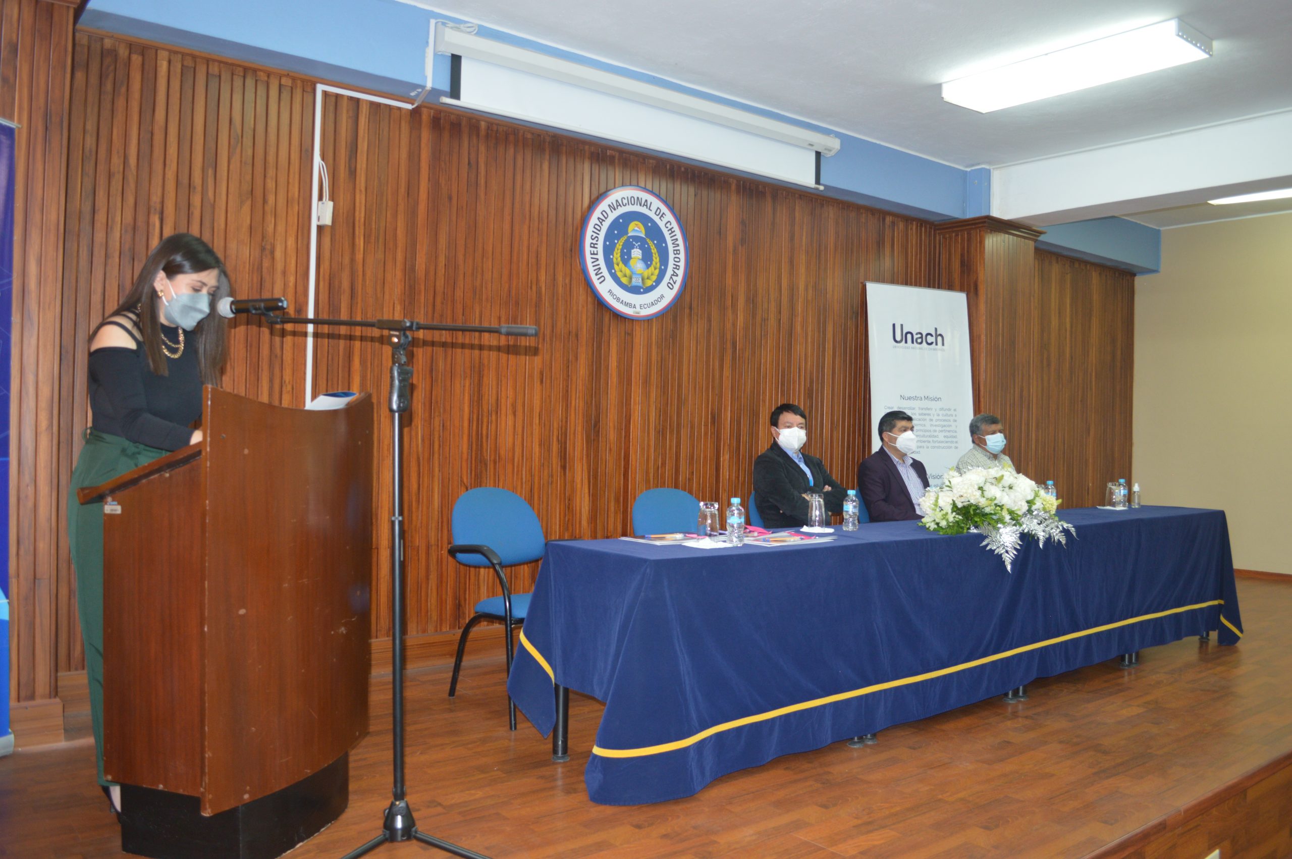 Palabras de bienvenida a cargo de la Mg. Johana Latorre, Representante Legal del FCPC-C-UNACH.