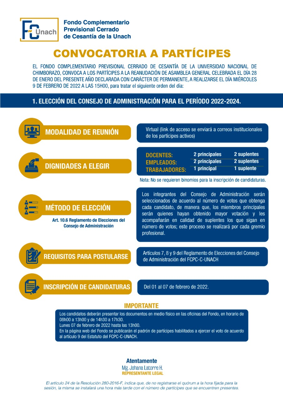 En este sentido el Fondo invita a los partícipes a postularse como candidatos para conformar el Consejo y a participar del proceso de elección.