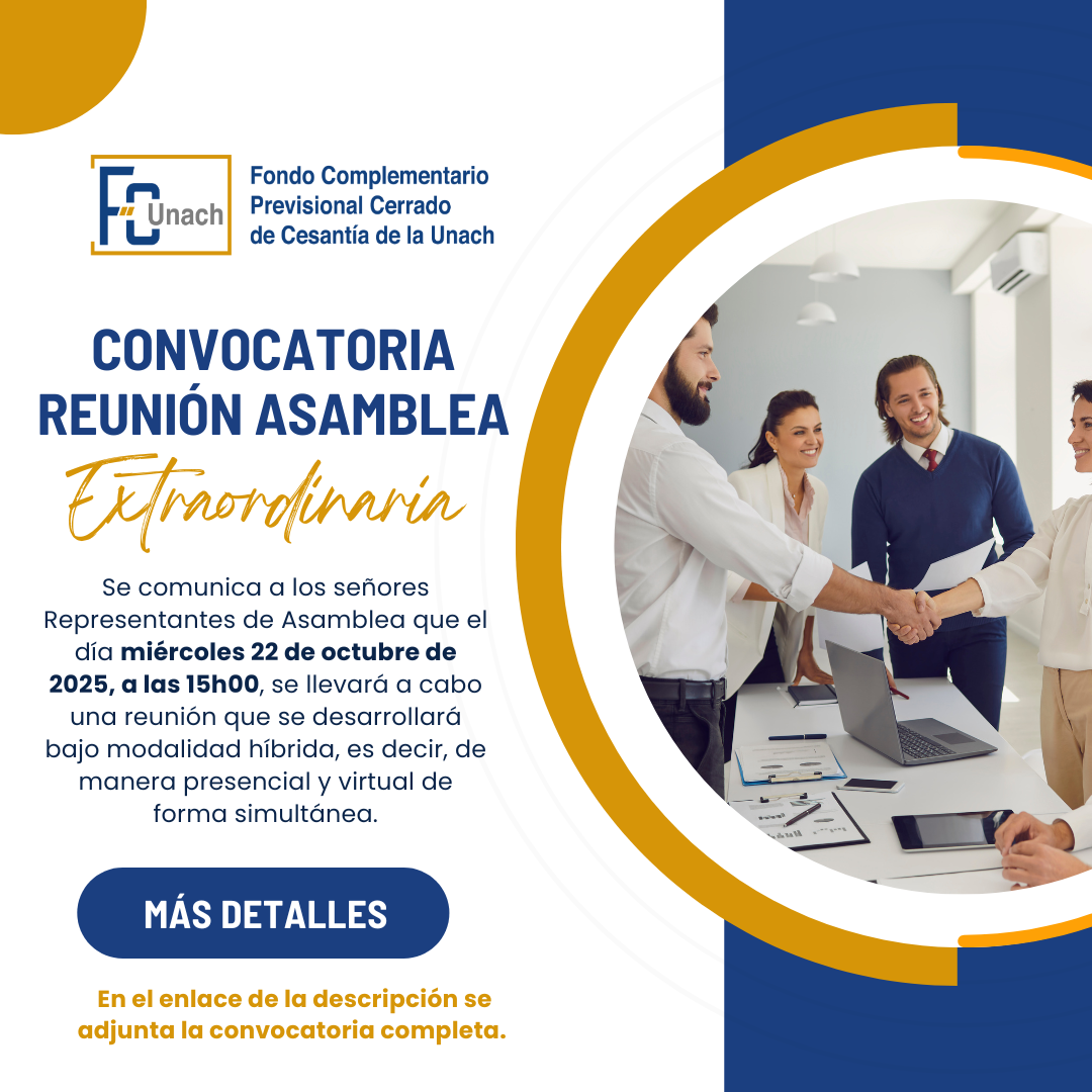 Se comunica a los señores Representantes de Asamblea que el miércoles 22 de octubre de 2025, a las 15h00, se realizará una reunión en modalidad híbrida —presencial y virtual de forma simultánea—.