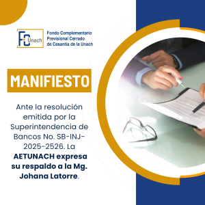 📢 Manifiesto La AETUNACH expresa su respaldo a la Mgs. Johana Latorre, ante la Resolución No. SB-INJ-2025-2526 emitida por la Superintendencia de Bancos. https://fcpcunach.com.ec/wp-content/uploads/2025/11/aetunach-manifiesto.pdf DIRECCIÓN