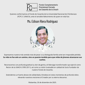🕊️ Nota de pesar Quienes conformamos el Fondo de Cesantía de la Universidad Nacional de Chimborazo (FCPC-C-UNACH), ante el sensible fallecimiento de quien en vida